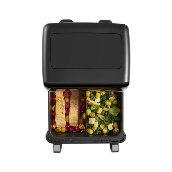 سبد هوشمند FlexZone به‌راحتی از یک محفظه بزرگ ۹ لیتری به دو محفظه مستقل ۴.۵ لیتری تبدیل می‌شود. این طراحی به شما امکان می‌دهد دو غذای متفاوت را بدون انتقال طعم و بو به‌صورت هم‌زمان آماده کنید یا یک غذای حجیم را در یک محفظه بزرگ بپزید.