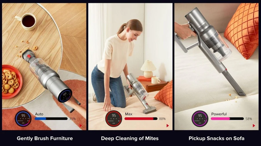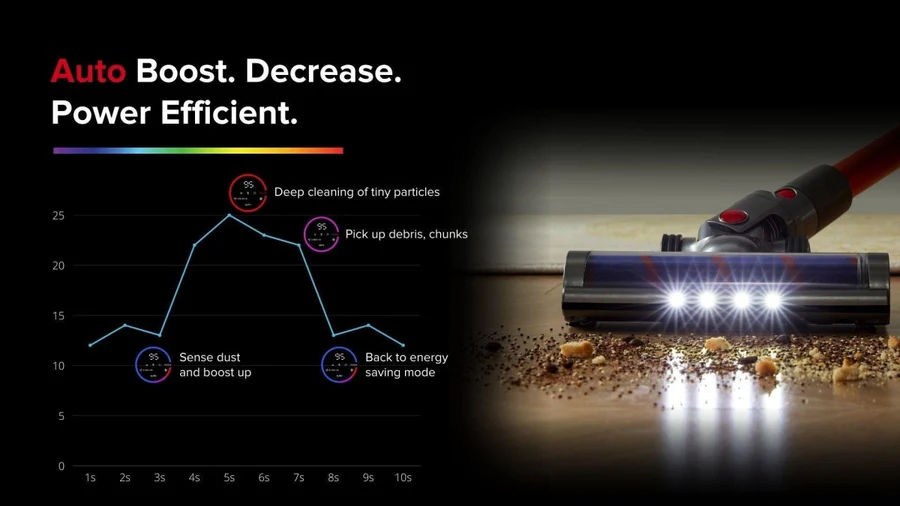 تشخیص هوشمند گرد و غبار: با استفاده از سنسورهای مادون قرمز، دستگاه بهصورت خودکار سرعت مکش را بر اساس میزان گرد و غبار تنظیم میکند.